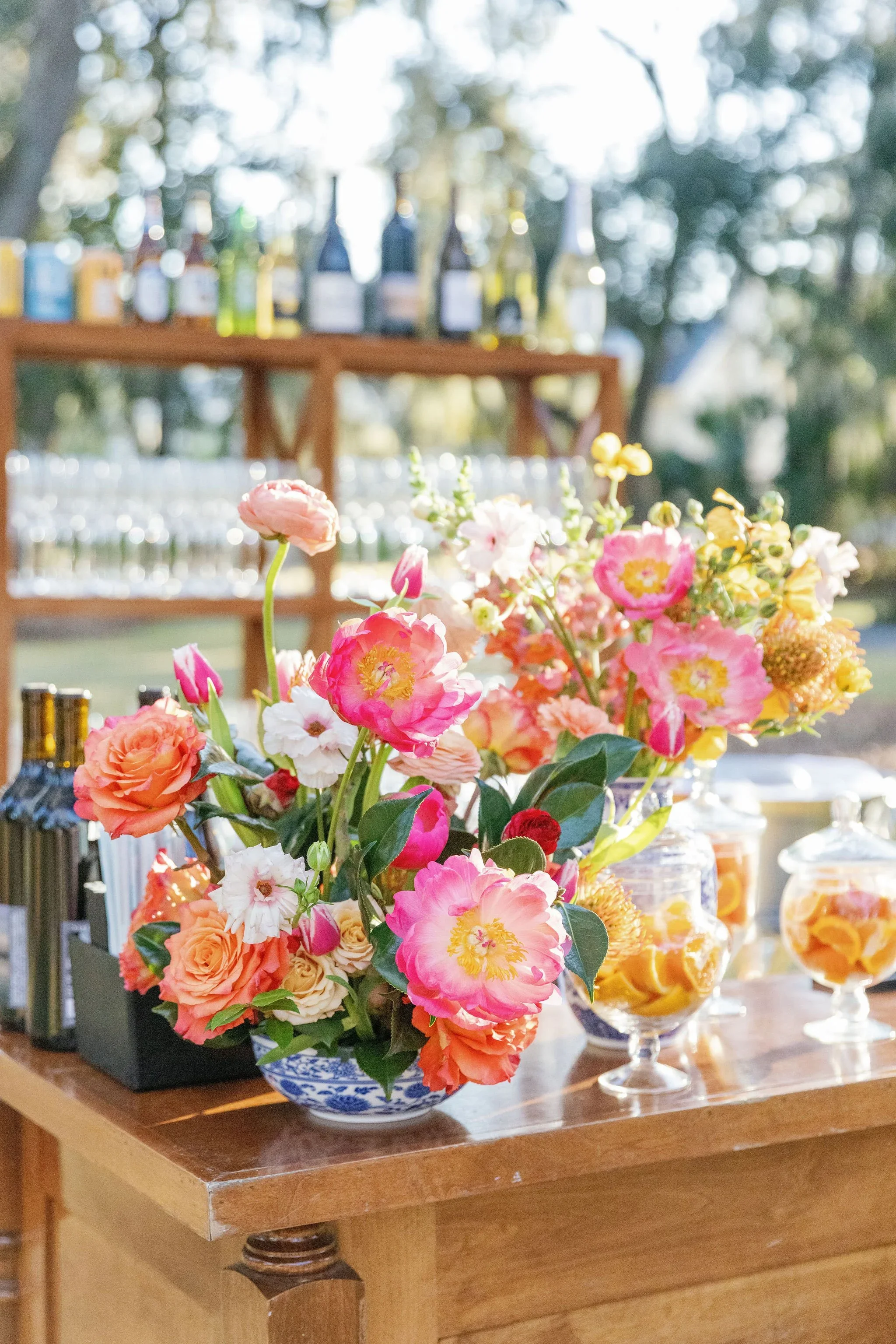 Depending on the wedding planner's process, we sometimes create a mockup floral tablescape to accompany the rental options. Other times, we have a detailed virtual meeting, as we often work with clients from various locations. We begin the flower ordering process about a month before the event date and finalize the order two weeks in advance. We try to give our clients a preview of the flowers we plan to order, while also letting them know that we will ultimately choose what looks best and is wedding-ready.